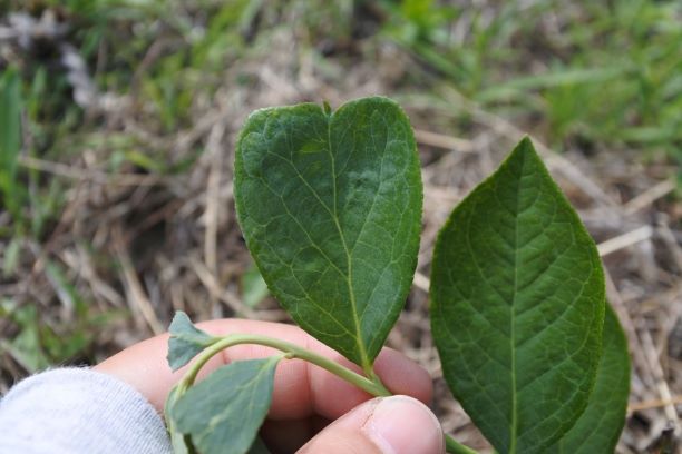 先日、ブルーベリーを眺めていたら♡ハート型の葉を見つけました。